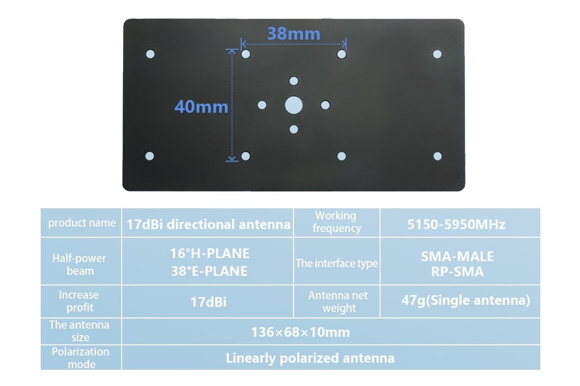 Завдяки високому коефіцієнту підсилення 17 dB, вона ідеально підходить для далеких польотів і FPV-систем.