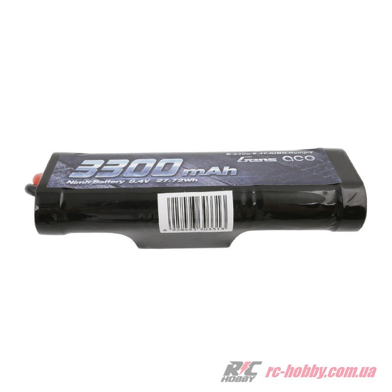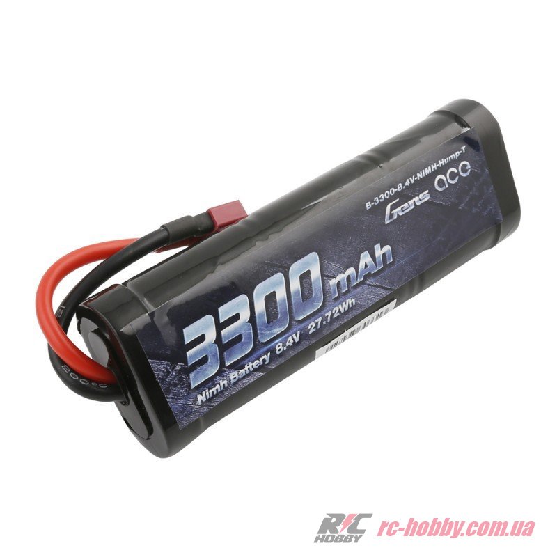 Технічні характеристики Акумулятор Gens Ace NiMH 8,4В 3300мАг 7-Cells 134х46х42мм 397г T-Plug (B-3300-8.4V-NIMH-Hump-T)