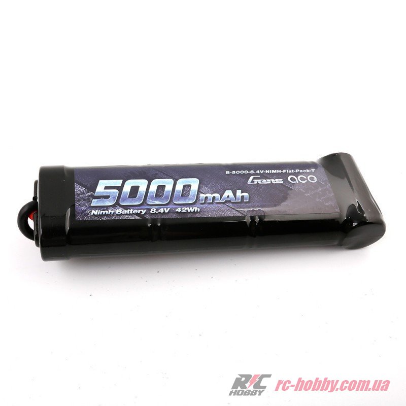 Технічні характеристики Аккумулятор Gens Ace Ni-MH 8,4В 5000мАч 7-Cells 1С 141х48х45мм 492г T-Plug (B-5000-8.4V-NIMH-Flat-Pack-T)