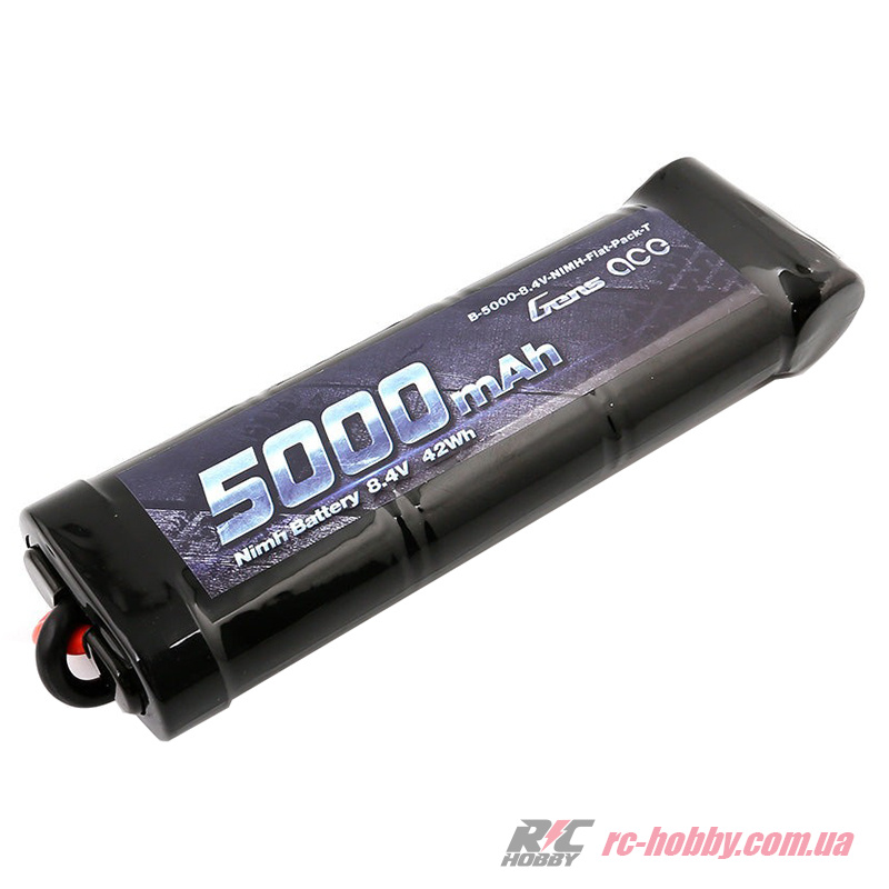 Технічні характеристики Акумулятор Gens Ace NiMH 8,4В 5000мАг 7-Cells 155х45х23,8мм 501г T-Plug (Deans) (B-5000-8.4V-NIMH-Flat-Pack-TRX)