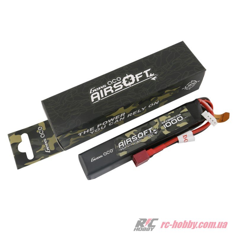 Акумулятор для страйкбола Gens Ace LiPO 11,1В 1000мАг 3S 25C 103х21х17мм 72г T-Plug Airsoft (GEA10003S25D)