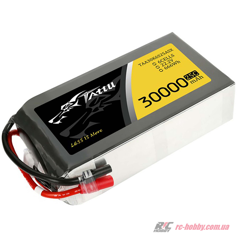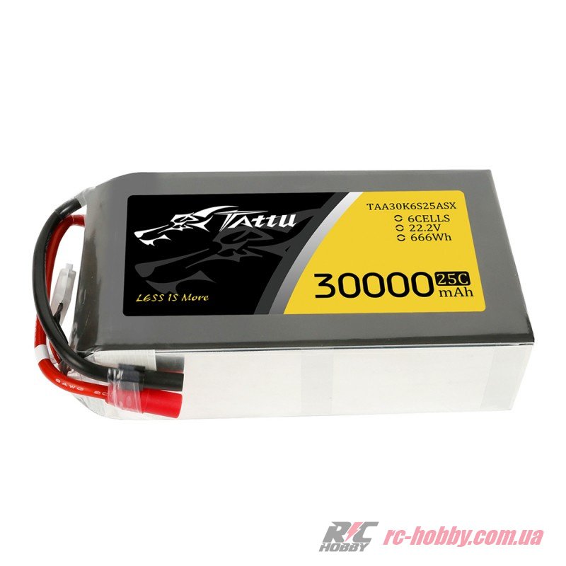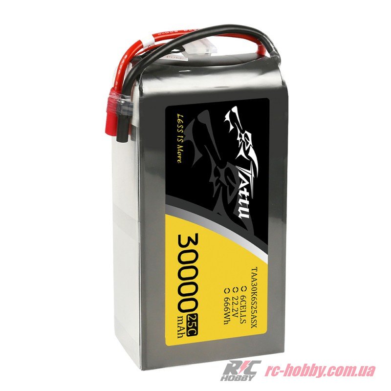 Специфікація акумулятора Tattu LiPO 22,2В 30000мАг 6S 25C 217х120х65мм 3505г AS150+XT150 (TA-25C-30000-6S1P)