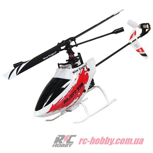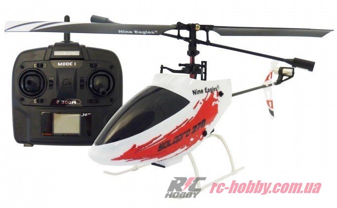 Производитель Nine Eagles оборудовал аппарат коллекторными, электрическими двигателями, которые работают от литий-полимерного аккумулятора емкостью 150 мАч. Управляется вертолет по 4-м каналам в диапазоне радиочастот 2,4 ГГц, это помехоустойчивая частота, при использовании которой возможно пилотирование нескольких моделей одновременно. Пульт управления имеет встроенный LCD экран, на который выводятся все основные показатели пульта управления, а также уровень заряда аккумуляторов или батарей передатчика. При необходимости можно подзарядить бортовой аккумулятор модели от пульта управления даже на улице. Радиопередатчик оборудован специальным разъемом, в который удобно и просто вставить аккумулятор. Подзарядка длится около 30 минут, и модель снова готова к полетам. Время зарядки зависит от уровня заряда батареек или аккумуляторов самого передатчика.