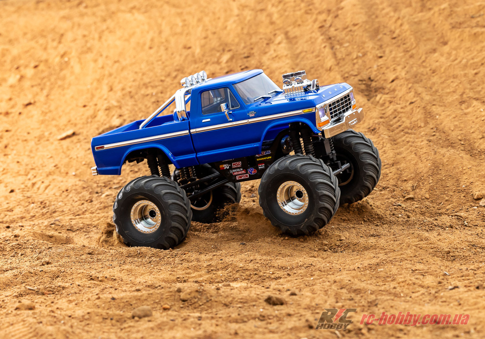 FORD F150 Traxxas 1979 TRX-4MT Monster Truck у масштабі 1:18 — це компактний трофі-гігант із ліцензованим кузовом Ford F-150 1979 року, що мчить із повним приводом 4WD.