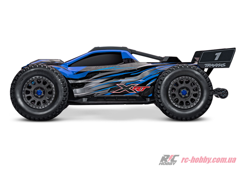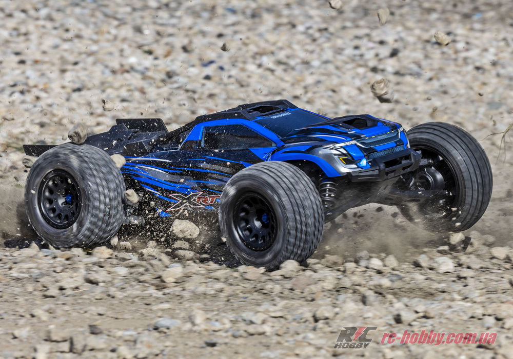 Низький центр ваги Traxxas XRT 78086-4, розширене шасі і плаский кузов забезпечують впевненість і контроль, оскільки авто розганяється до максимальної швидкості майже 100 км/год — тільки дайте йому простір!