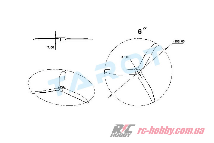 Пропеллеры Tarot 6045 3-лопастные 2шт черные (TL300E15)