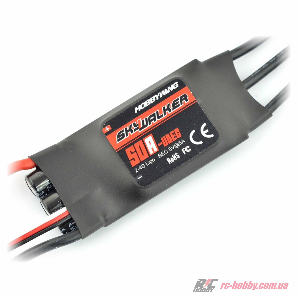 SKYWALKER 50A HOBBYWING ESC UBEC 2-4S 5A BEC регулятор (HW30216000)