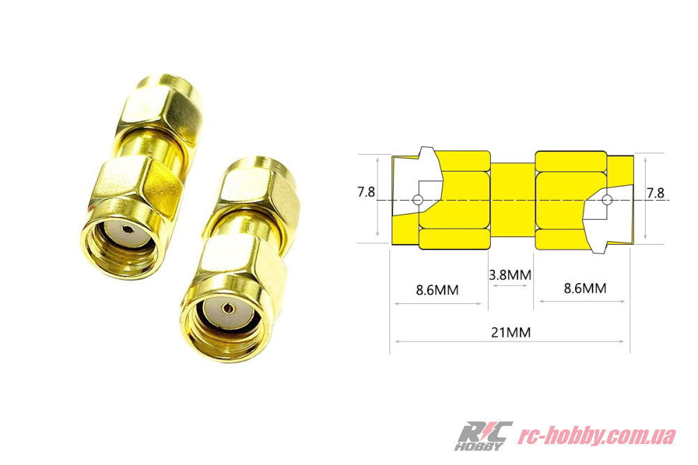 Технічні характеристики 50 шт - Перехідники для FPV та радіообладнання (RP-SMA M - RP-SMA M прямий)