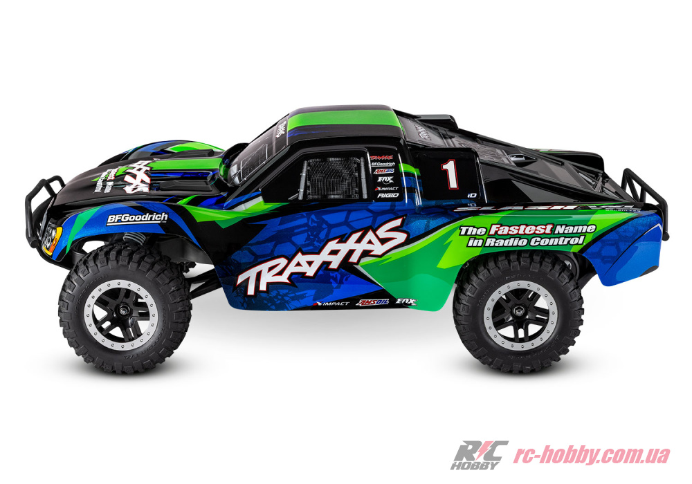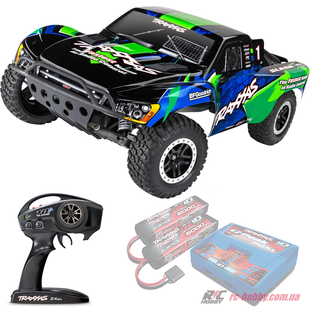 SLASH VXL RTR (Ready-To-Run) чекає лише вашої команди — додайте акумулятор (NiMH 7,2-8,4В 3000-5000 мАг або LiPO 7,4-11,1В 4000-7600 мАг) і зарядний пристрій Traxxas Charger, і вперед, підкорювати траси!