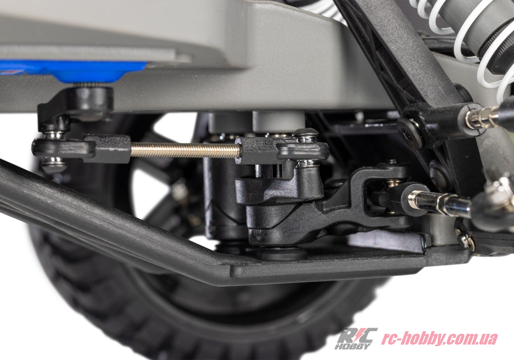 Одношвидкісна трансмісія з передатним числом 2,72 і задній привід 2WD із колісною базою 335 мм забезпечують вибуховий ривок і маневреність для ефектних заносів.